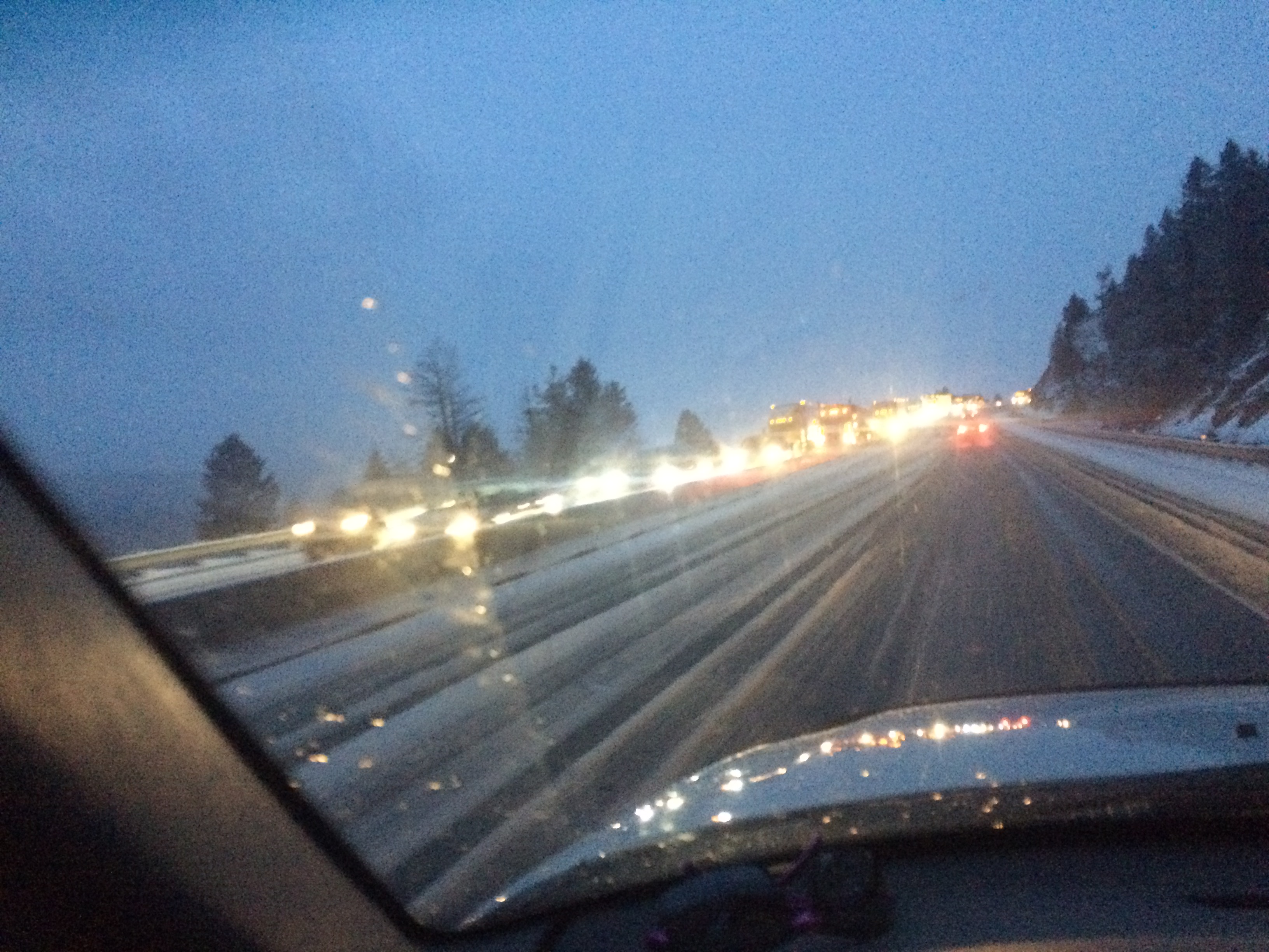 Eight hours into my drive rain started falling and the caravan of traffic along I90 W slowed from 80 to 75, then 65, finally 45 miles per hour. We climbed Homestake pass one after another making our way through rain mixed with snow.